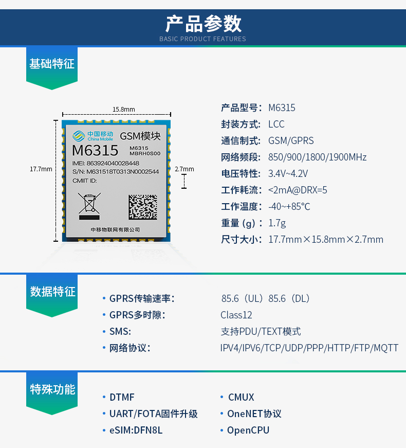 中國移動OneMO GSM/GPRS模塊物聯(lián)網(wǎng)無線通信M6315-兼容移遠M26