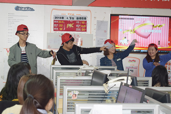 多才多藝的創(chuàng)勝人帶來了一首非常好聽的歌曲《給未來的自己》,這首歌告訴我們對未來要充滿信心,不放棄夢想,坦蕩面對人生。另外的一個才藝《三句半》讓大家捧腹大笑,充分的展現了創(chuàng)勝人的才華。