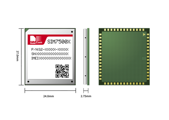 SIM7500系列采用LGA尺寸,緊湊尺寸為24mm * 27mm,非常適合緊湊型產(chǎn)品設計。